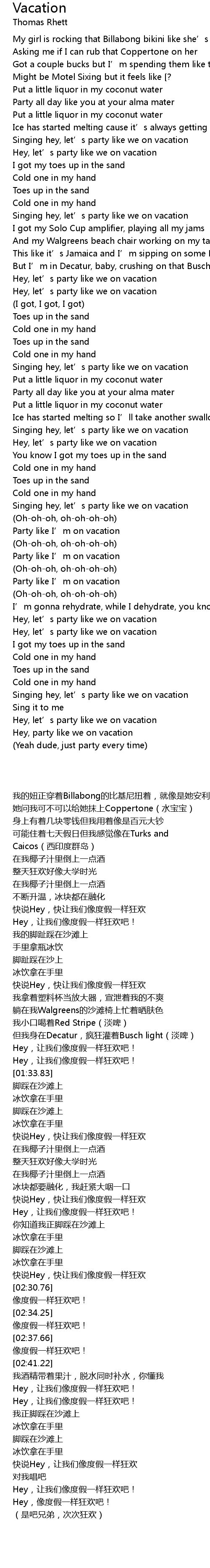 | [03:02.23] | Hey, let' s party like we on vacation |