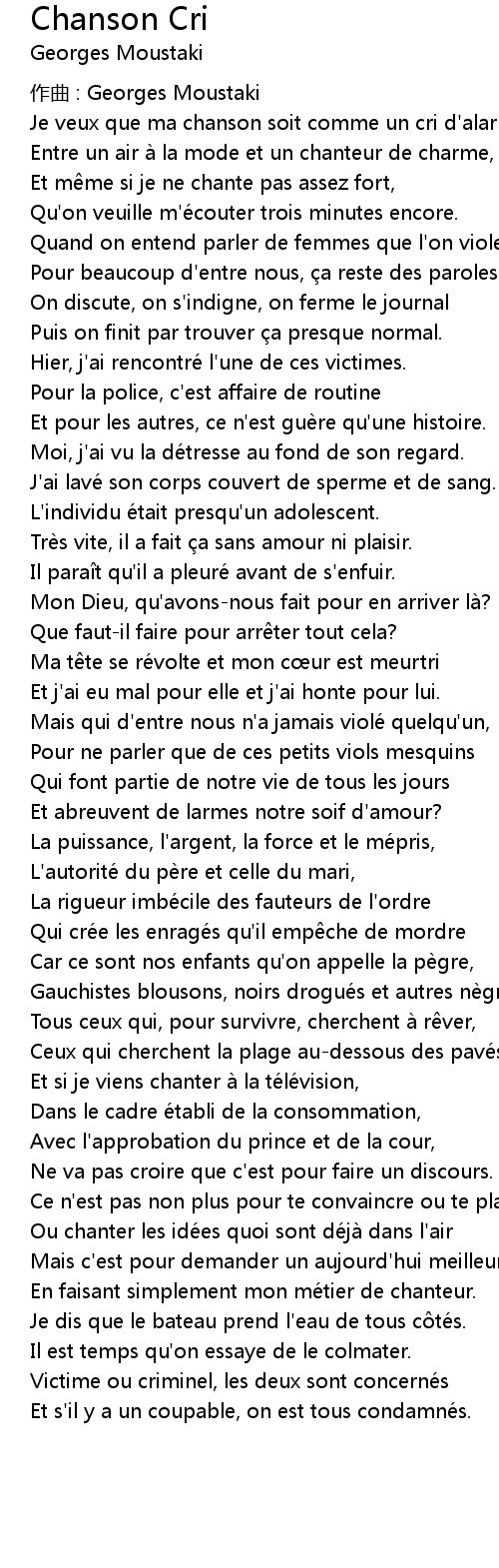 | zuò qǔ : Georges Moustaki | |