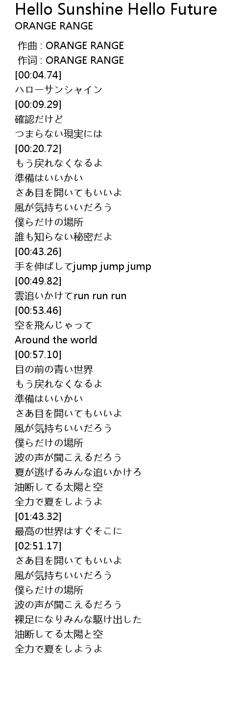 | [00:00.00] | 作曲 : ORANGE RANGE |