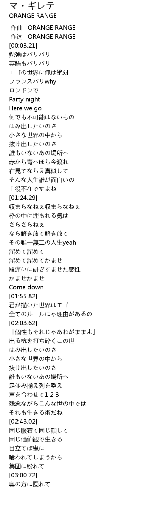 | [00:01.00] | 作词 : ORANGE RANGE |