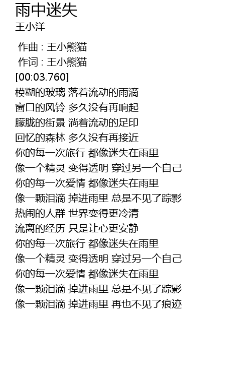 | [00:00.00] | 作曲 : 王小熊猫 |