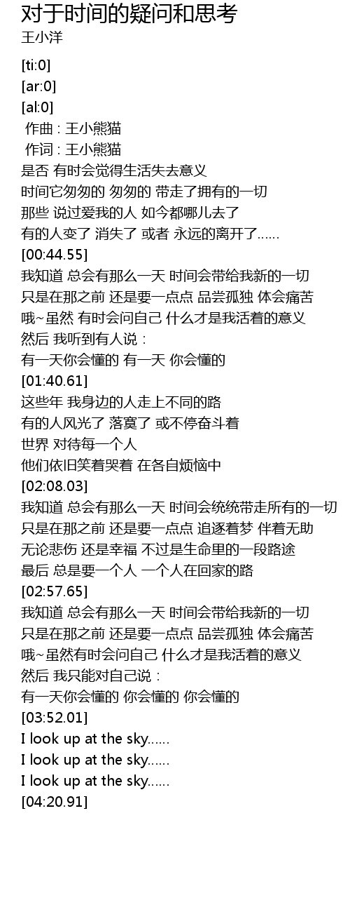 | [00:00.00] | 作曲 : 王小熊猫 |