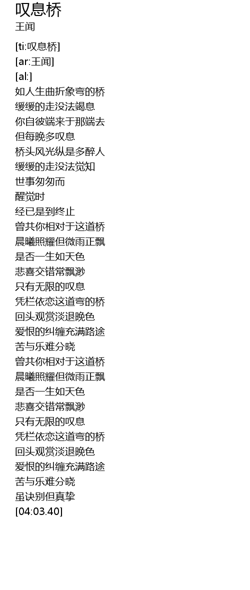 | [00:46.54] | 如人生曲折象弯的桥 |