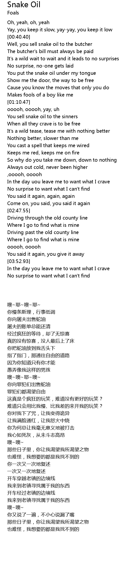 You put the snake oil under my tongue |