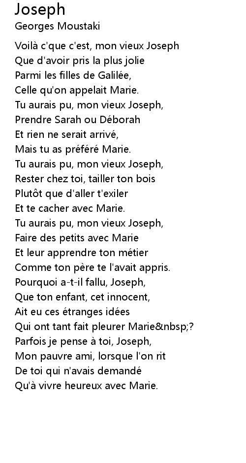 | Tu aurais pu, mon vieux Joseph, | |