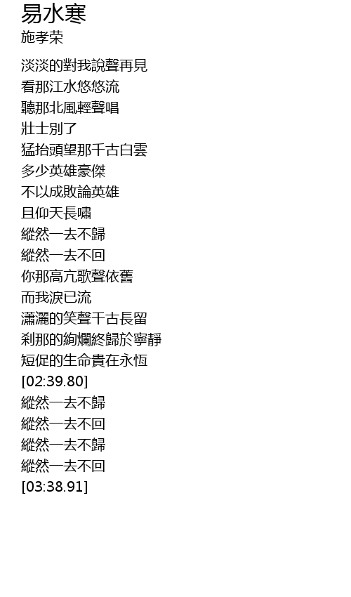 | Song | 易水寒 |