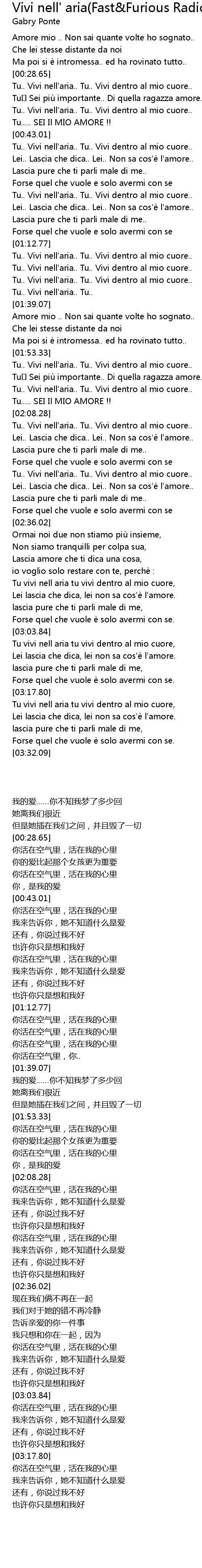 | Song | Vivi nell' aria(Fast&Furious Radio Edit) |