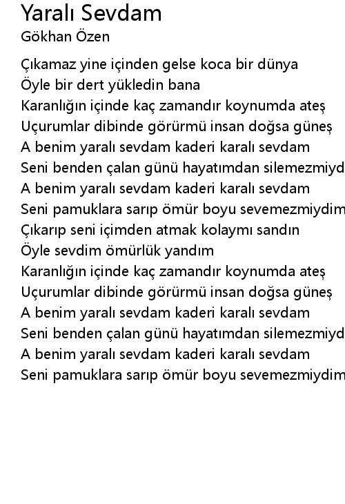 | A benim yaralı sevdam kaderi karalı sevdam | |