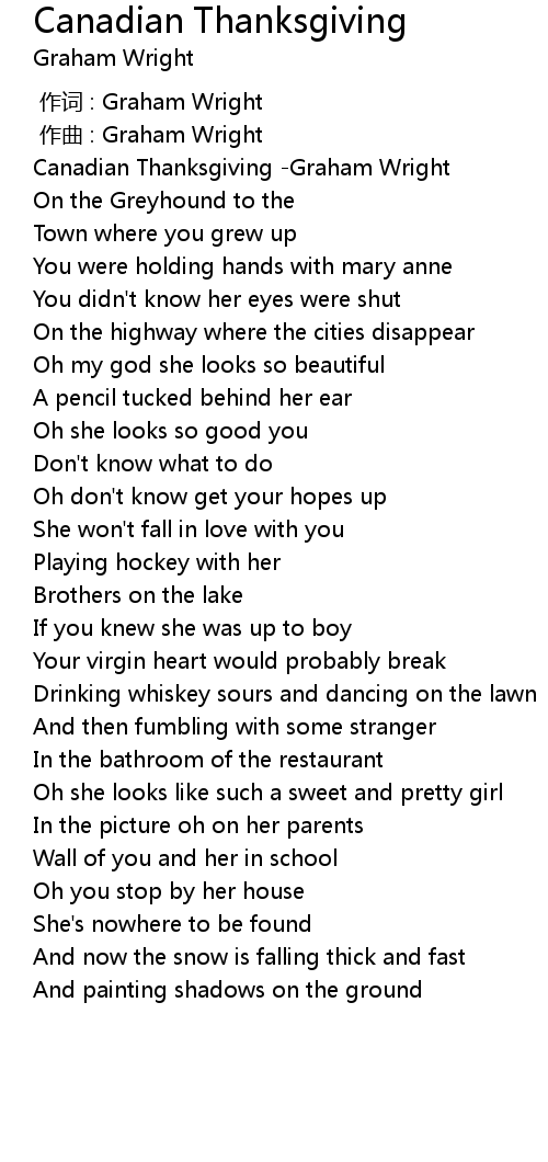 | [00:01.75] | Canadian Thanksgiving Graham Wright |