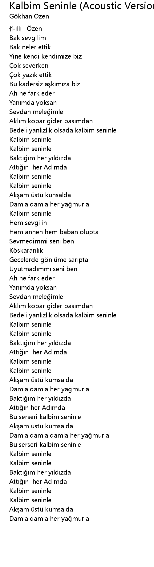 | Song | Kalbim Seninle (Acoustic Version) - unplug |