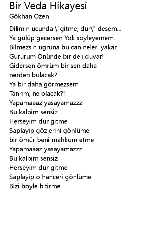 | Dilimin ucunda " gitme, dur" desem... | |