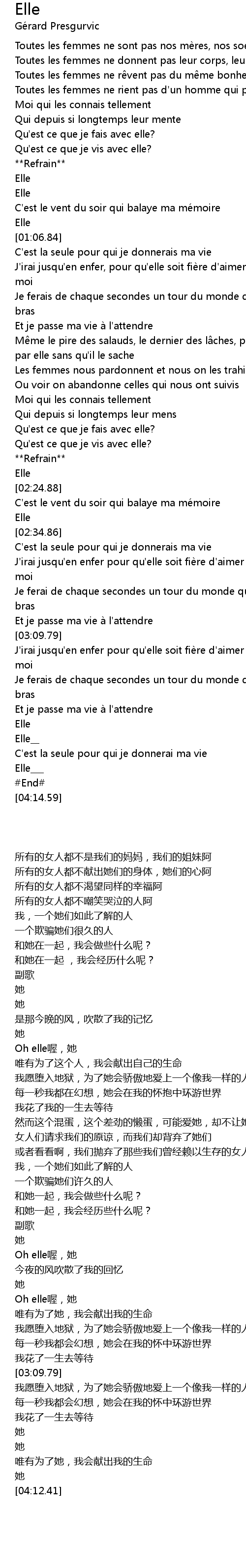 | [02:19.29] | Qu' est ce que je vis avec elle? |