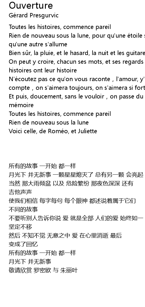 | [01:29.40] | Voici celle, de Romé o, et Juliette |