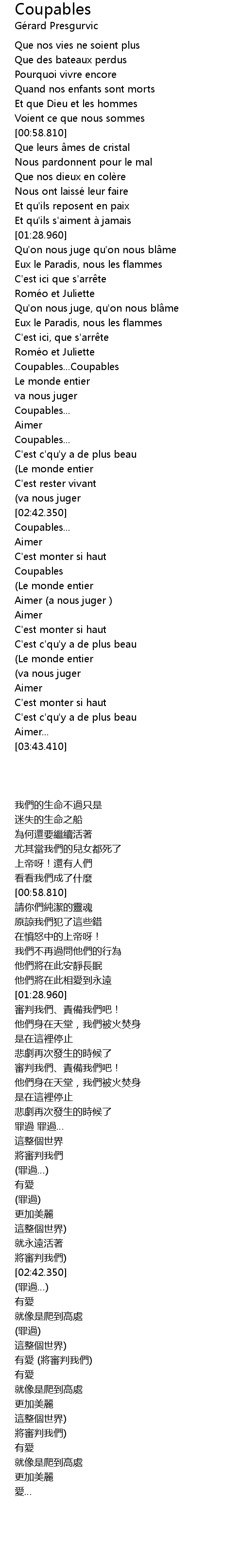 | [02:10.770] | Coupables...Coupables |