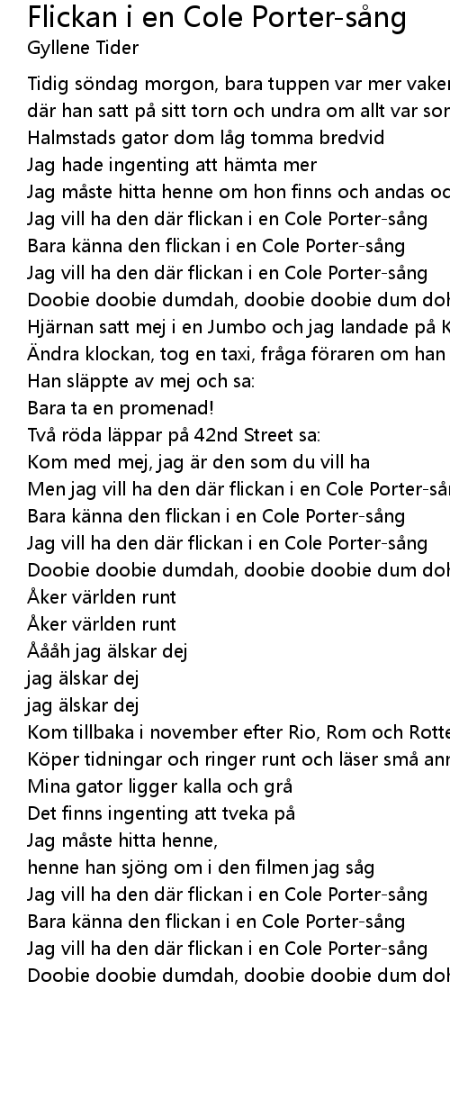 | Bara k nna den flickan i en Cole Porters ng | |