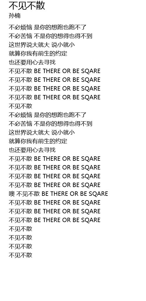 | [02:33.300] | 不见不散 BE THERE OR BE SQARE |