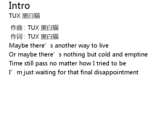 | [00:00.00] | zuo qu : TUX hei bai mao |
