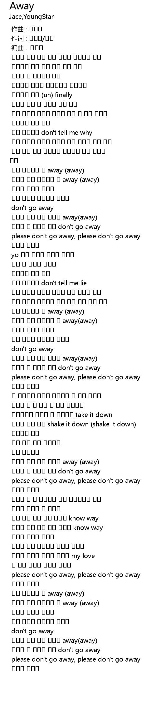 | [01:35.264] | 멀리 달아나지 마 away (away) |