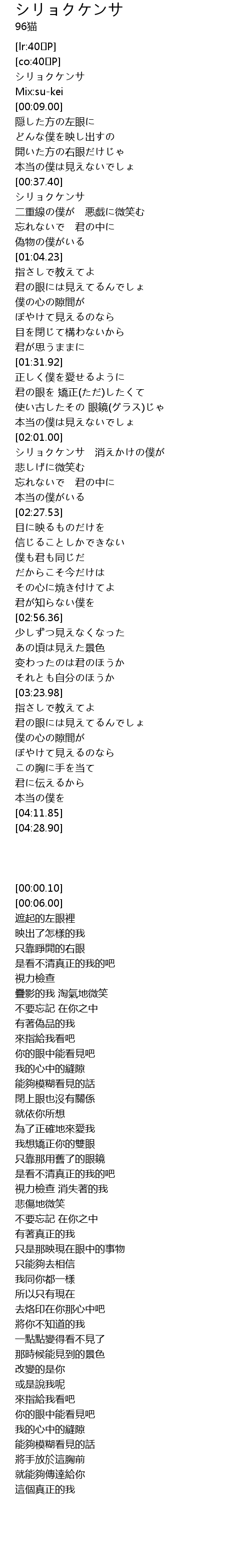 | [02:01.08] | シリョクケンサ 消えかけの僕が |