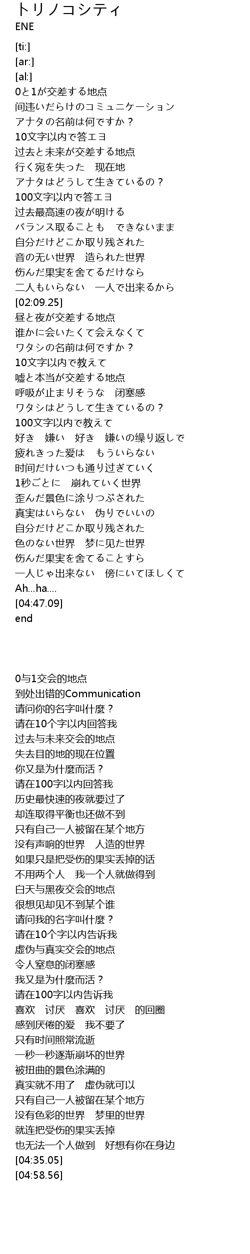 | [03:41.55] | ワタシはどうして生きているの? |