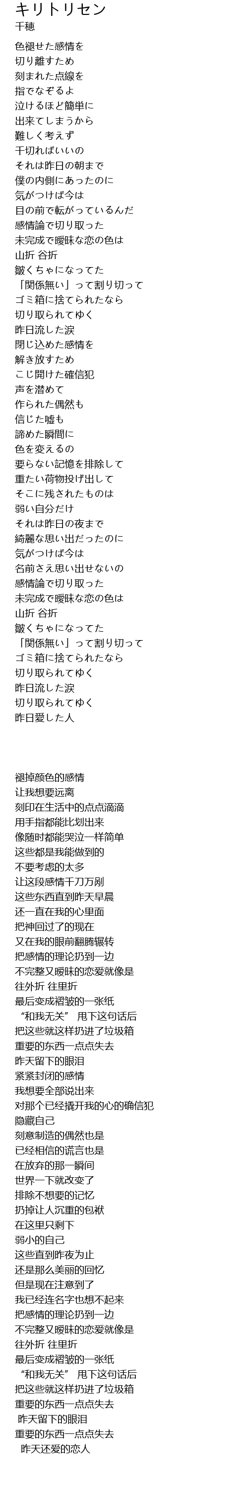 | [00:44.22] | 千切ればいいの |