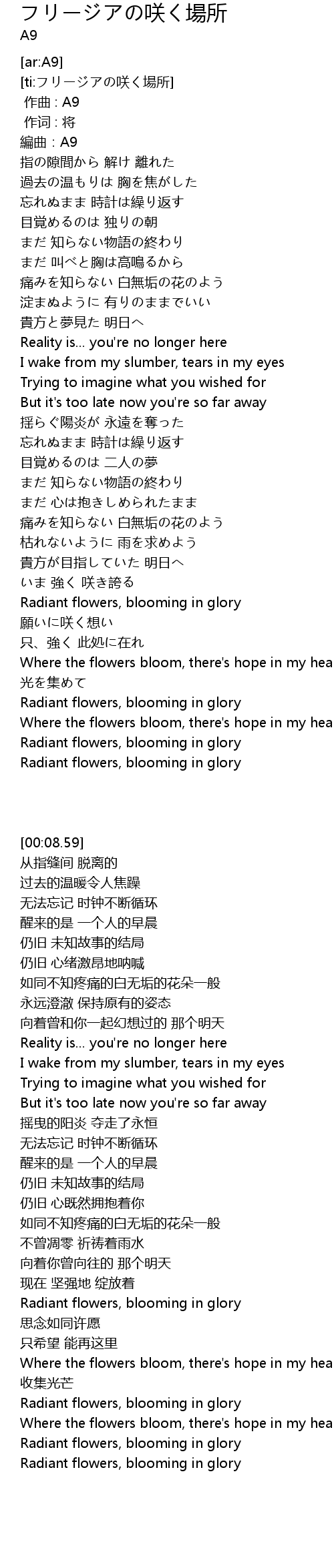 | [04:06.01] | Radiant flowers, blooming in glory |
