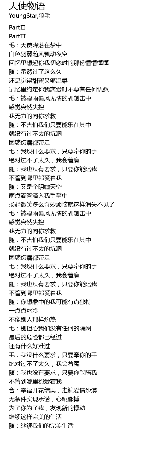 | [02:30.28] | 毛:我没什么要求,只要牵你的手 |