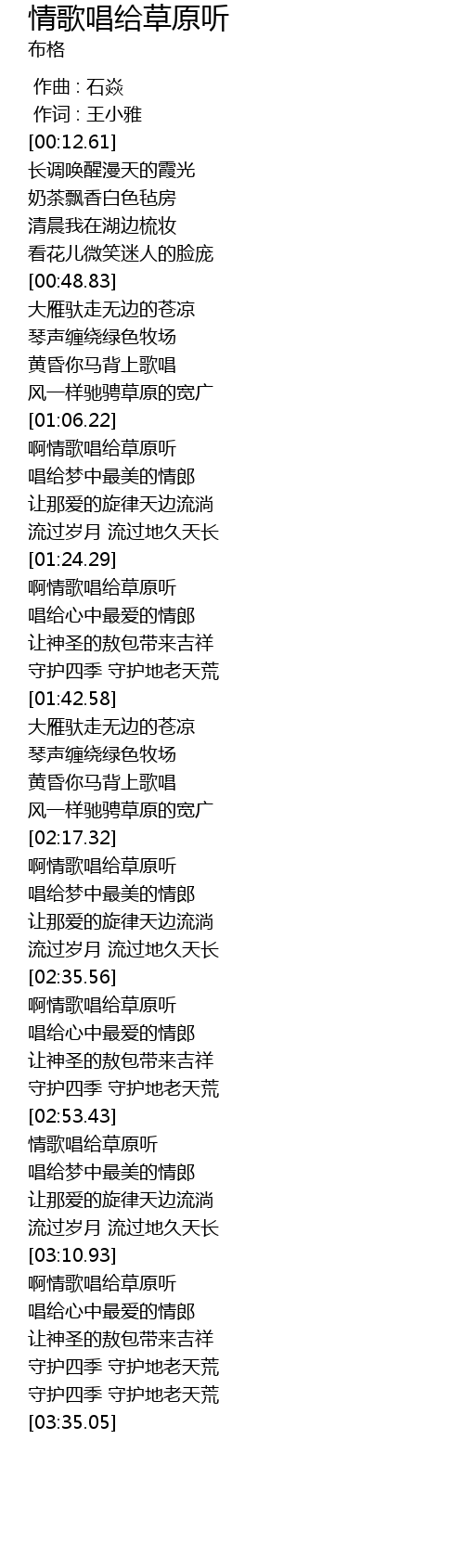 | [03:11.53] | a qíng gē chàng gěi cǎo yuán tīng |