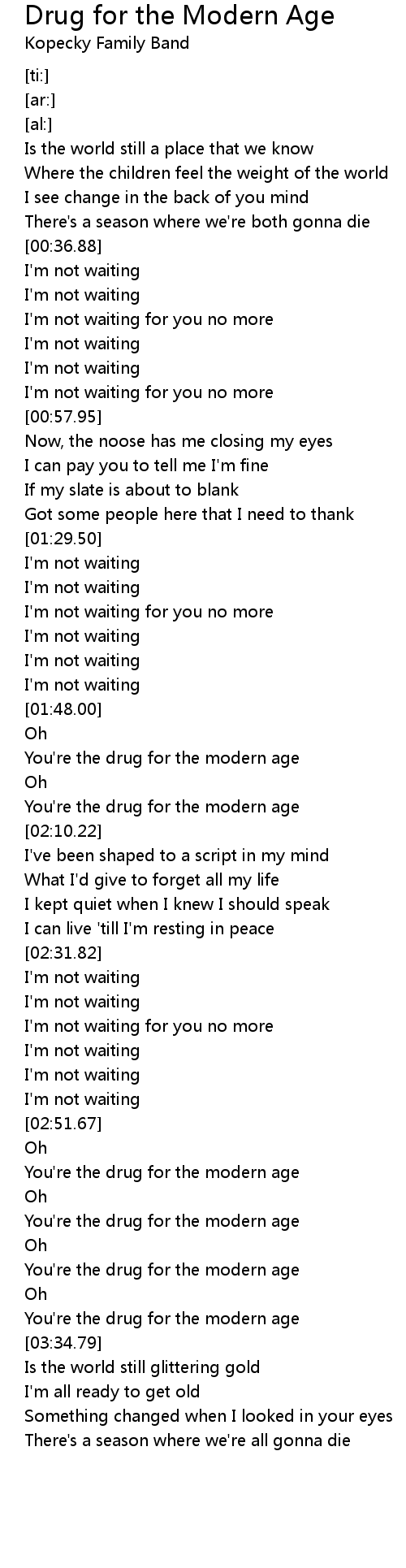 You're the drug for the modern age |