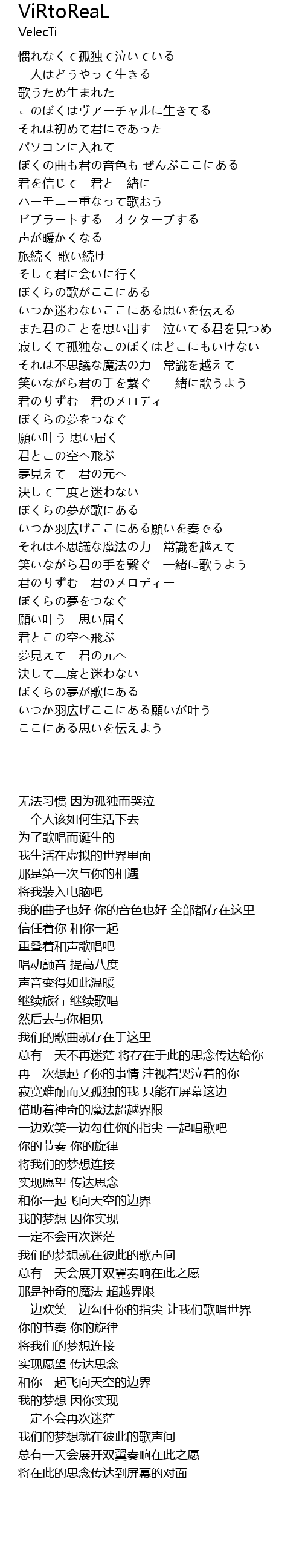 | [00:37.533] | このぼくはヴアーチャルに生きてる |