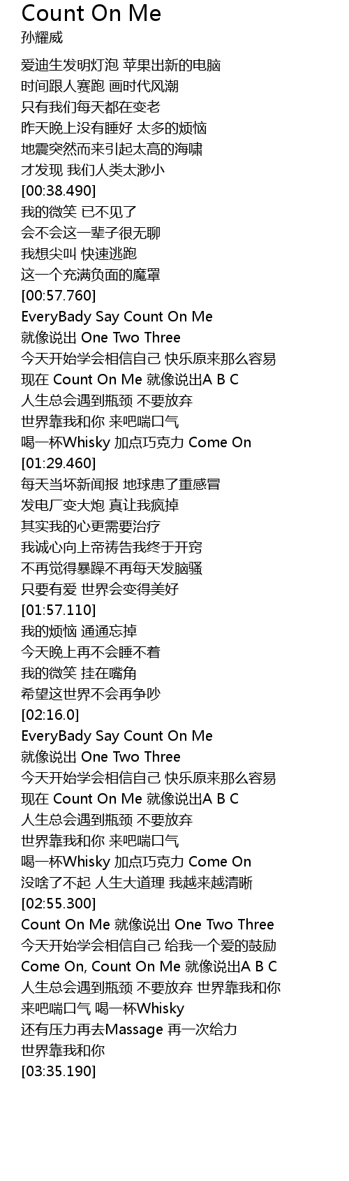 | [02:56.170] | Count On Me jiu xiang shuo chu One Two Three |