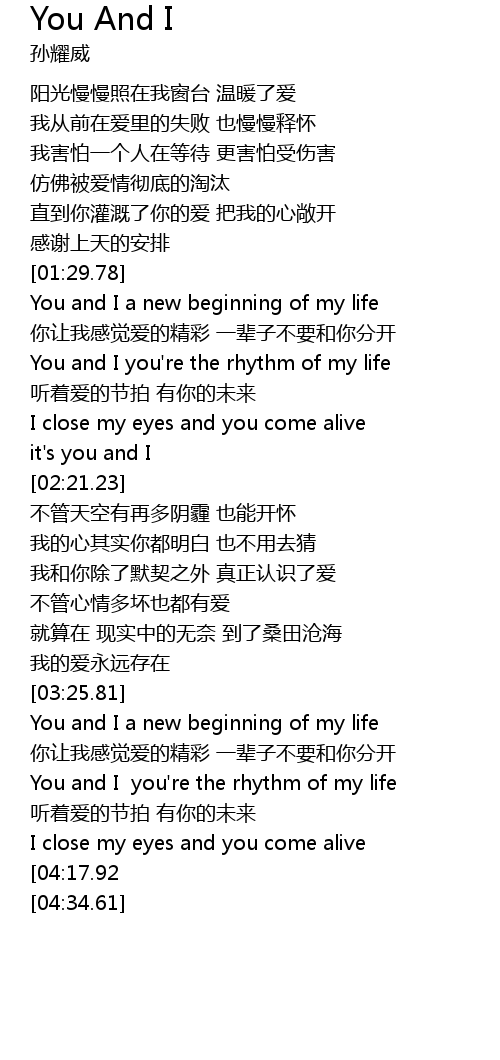 | [03:48.46] | You and I you' re the rhythm of my life |