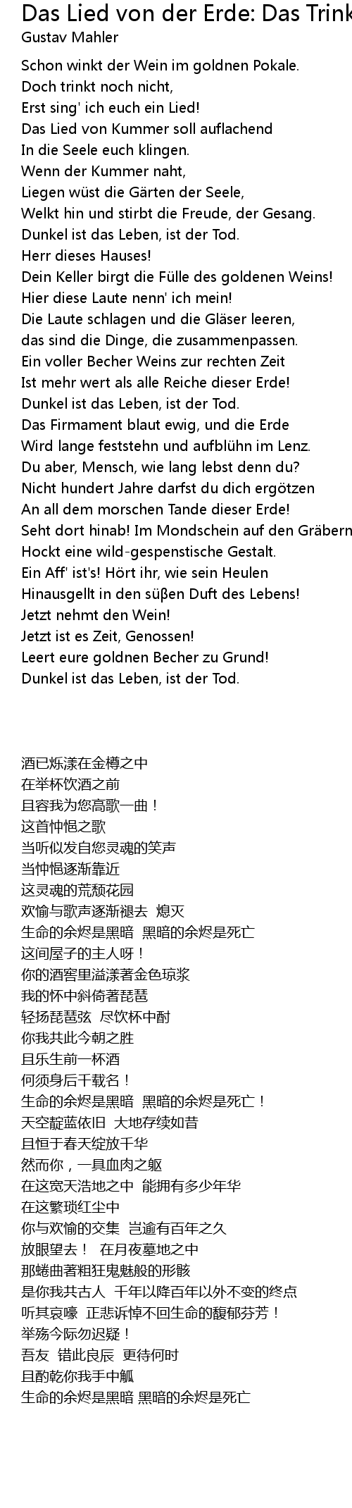 | Song | Das Lied von der Erde: Das Trinklied vom Jammer der Erde |