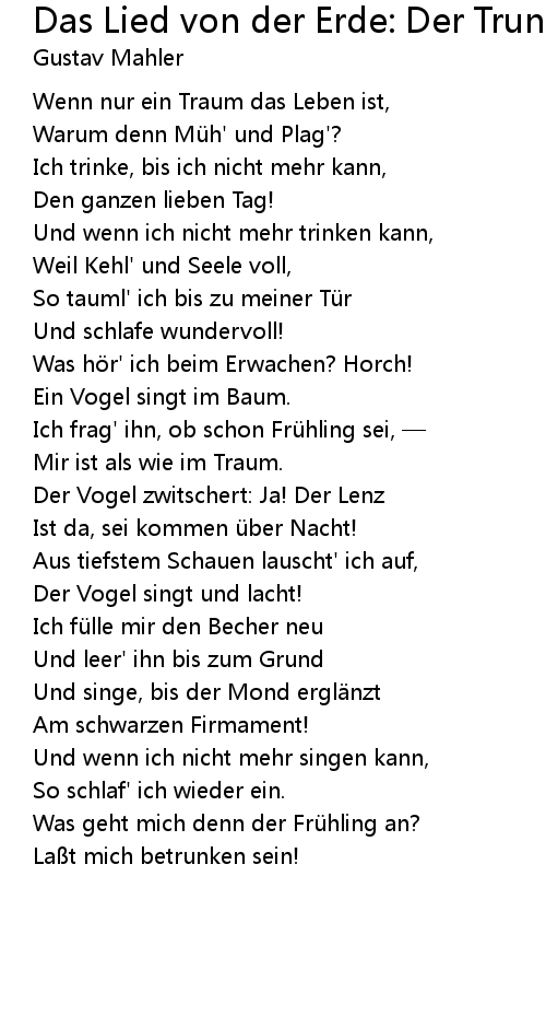 | Song | Das Lied von der Erde: Der Trunkene im Fruehling |