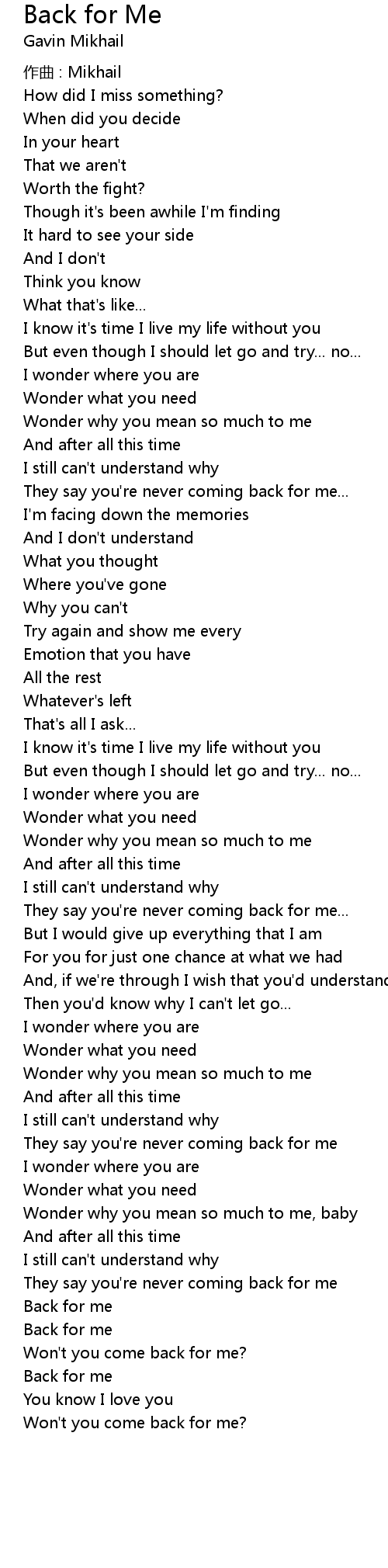 | Won' t you come back for me? | |