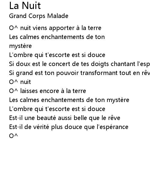 | [00:02.00] | O nuit viens apporter a la terre |