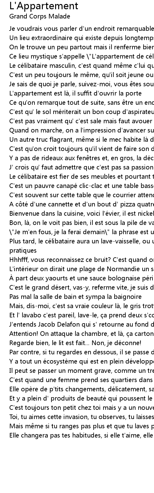 | C' est toujours ton petit chez toi mais y a un nouveau parfum dans l' atmosphe re | |