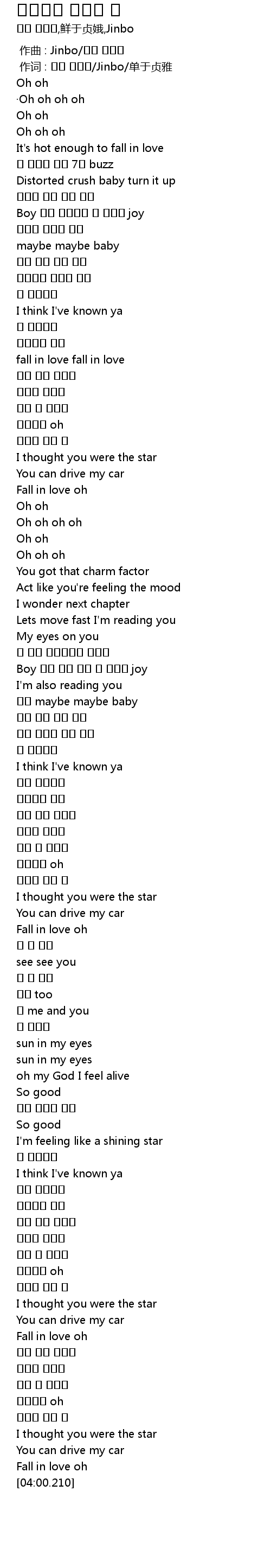 | [01:53.050] | Boy 나도 니가 주는 이 눈빛이 joy |