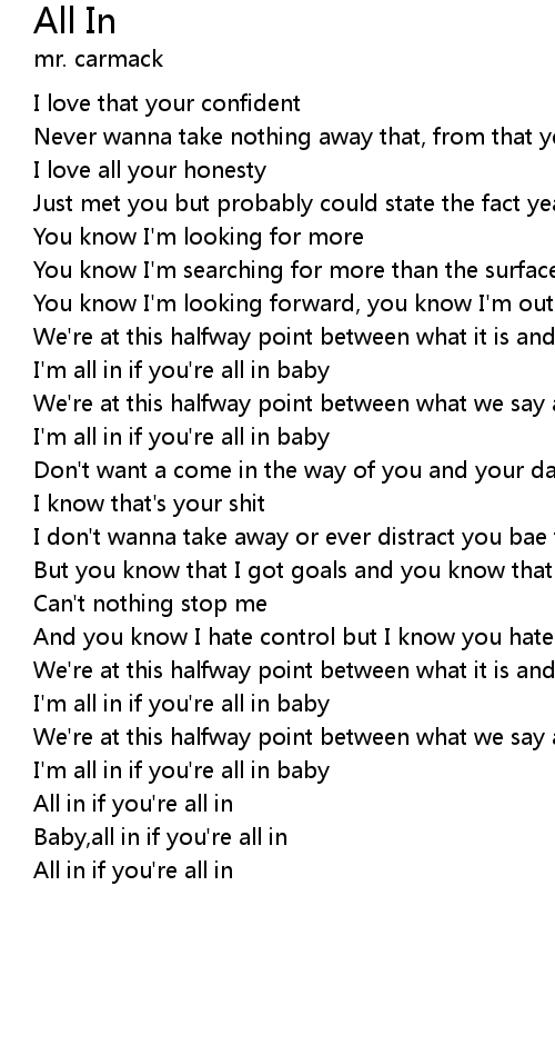 I'm all in if you're all in baby |