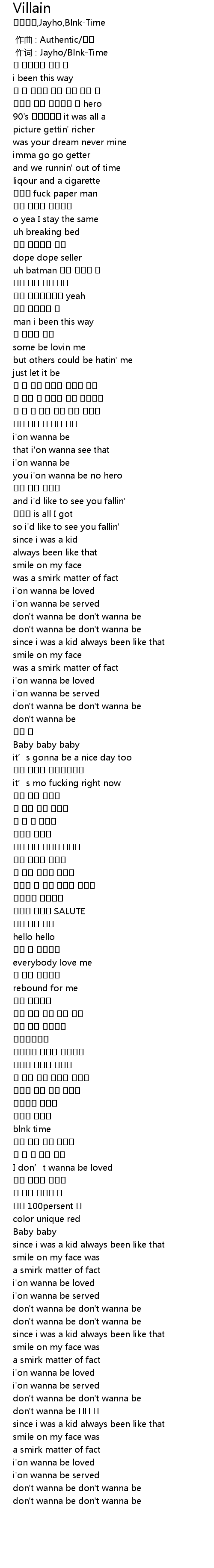 | [00:01.00] | 作词 : Jayho/Blnk-Time |
