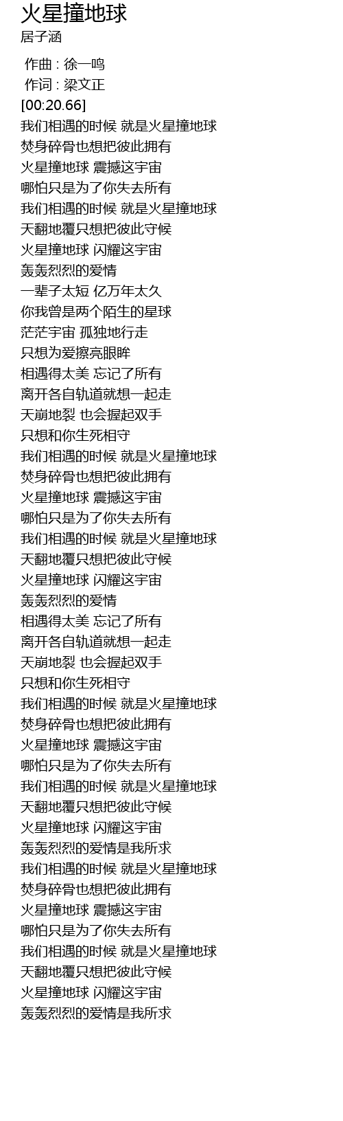 | [00:22.66] | 我们相遇的时候 就是火星撞地球 |