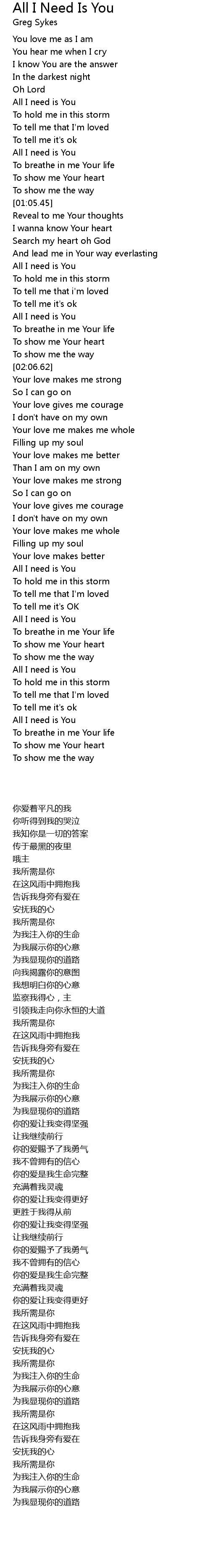 All I need is You |