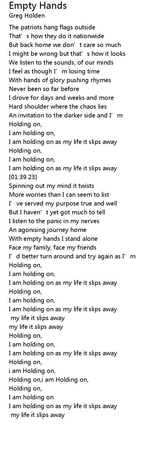 | [00:59.88] | Hard shoulder where the chaos lies |
