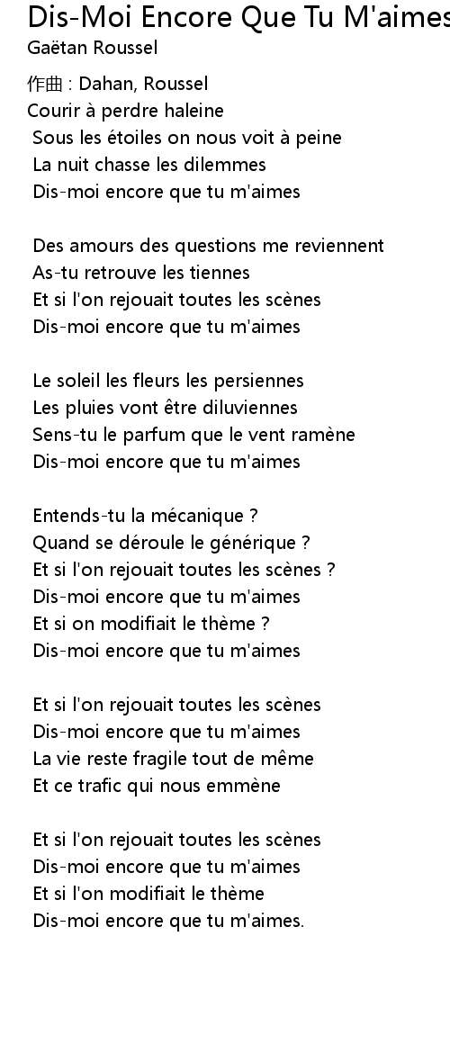 | Song | Dis-Moi Encore Que Tu M'aimes |