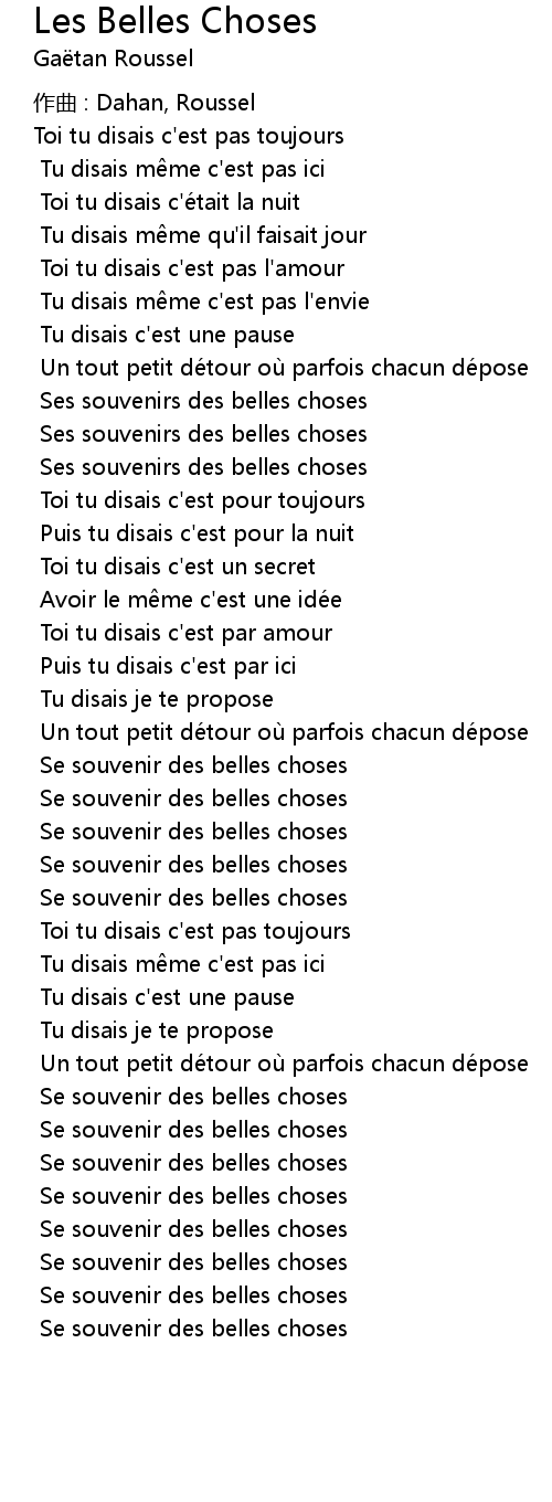 | Song | Les Belles Choses |