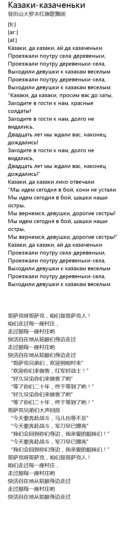 Казаки, да казаки, ай да казаченьки |