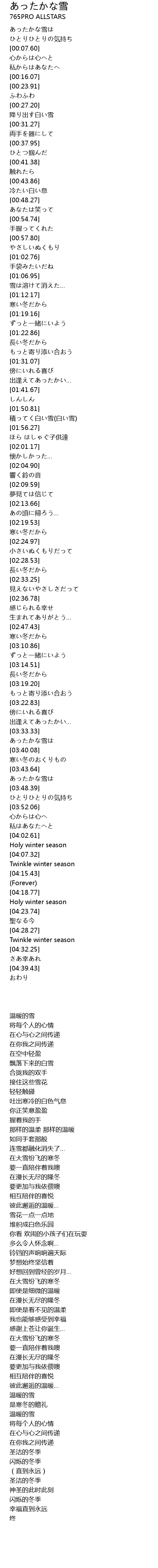 | [01:51.44] | 積ってく白い雪(白い雪) |