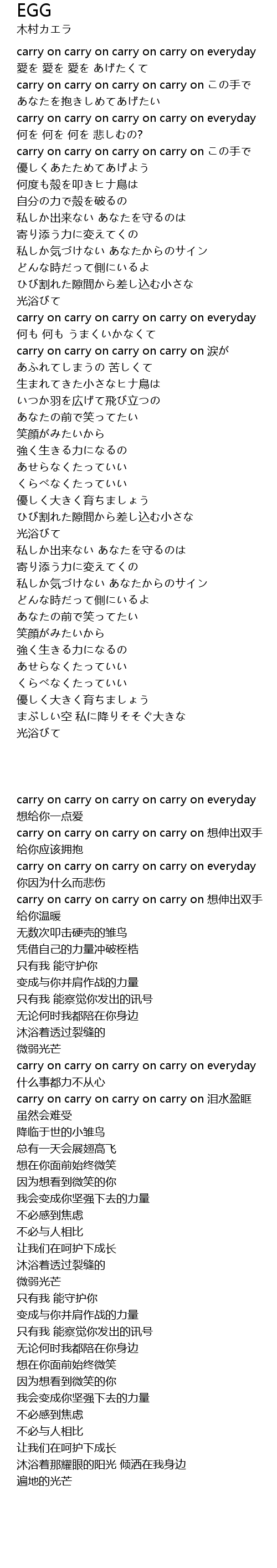 | [00:48.85] | carry on carry on carry on carry on everyday |