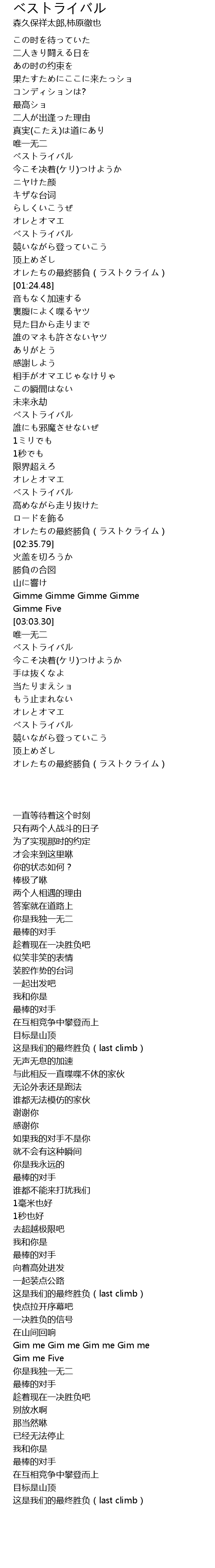 | [01:16.79] | オレたちの最終勝負(ラストクライム) |
