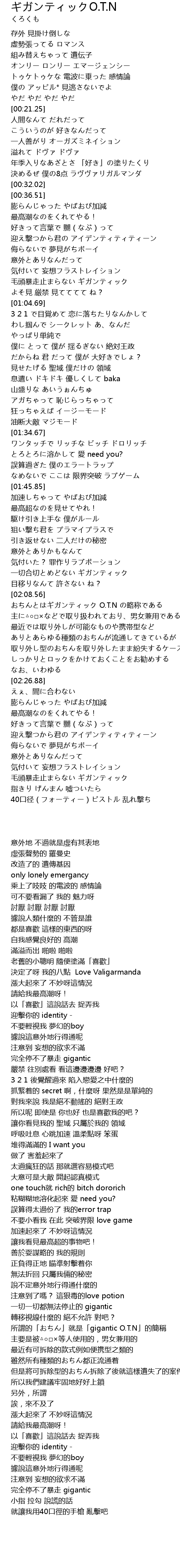 | [02:08.89] | おちんとはギガンティック O.T.N の略称である |